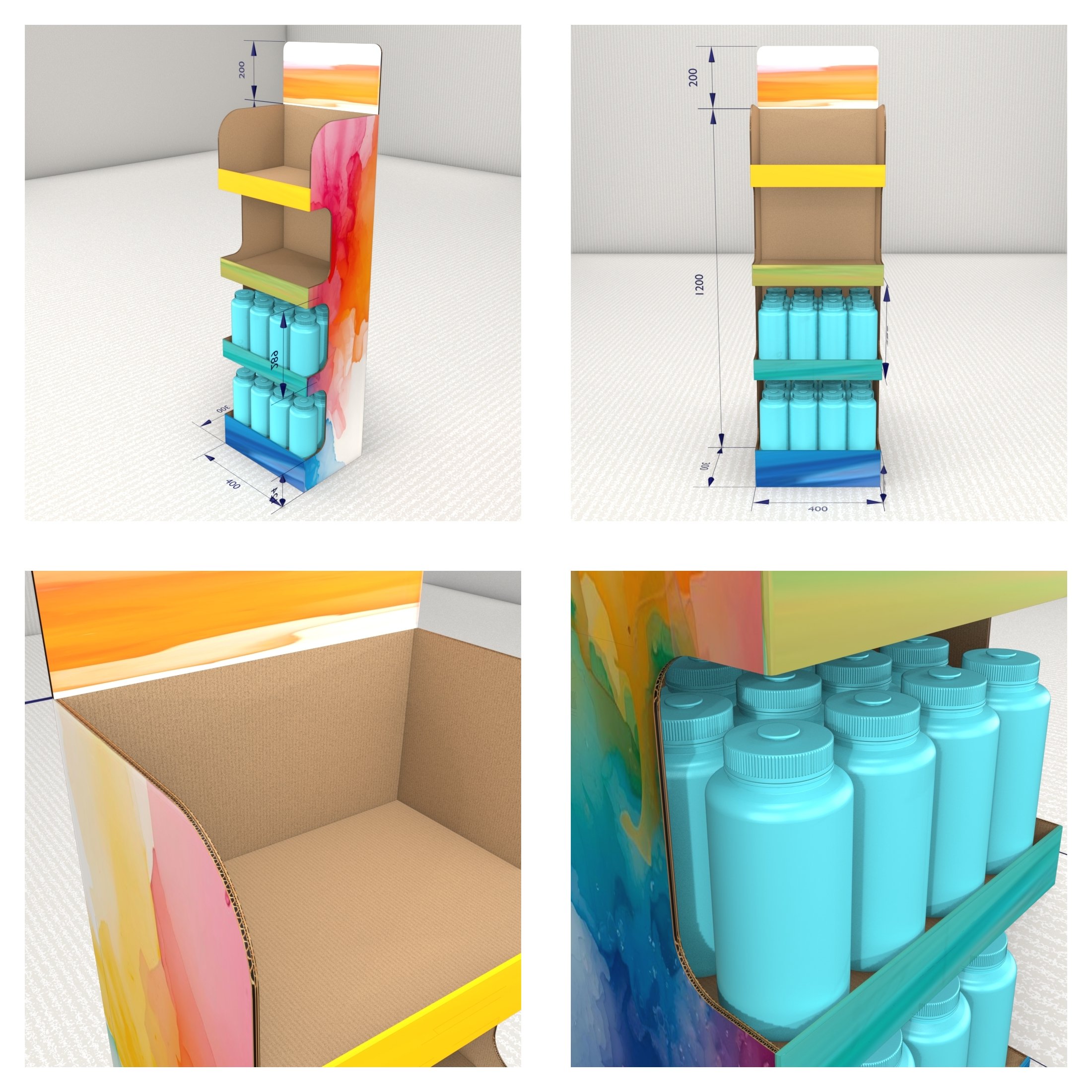 POS (Point-Of-Sale) FSDU (Free Standing Display Unit) Generator is a powerful Blender add-on that lets you create presentation-ready 3D models of cardboard Point-Of-Sale displays - with just a few clicks.